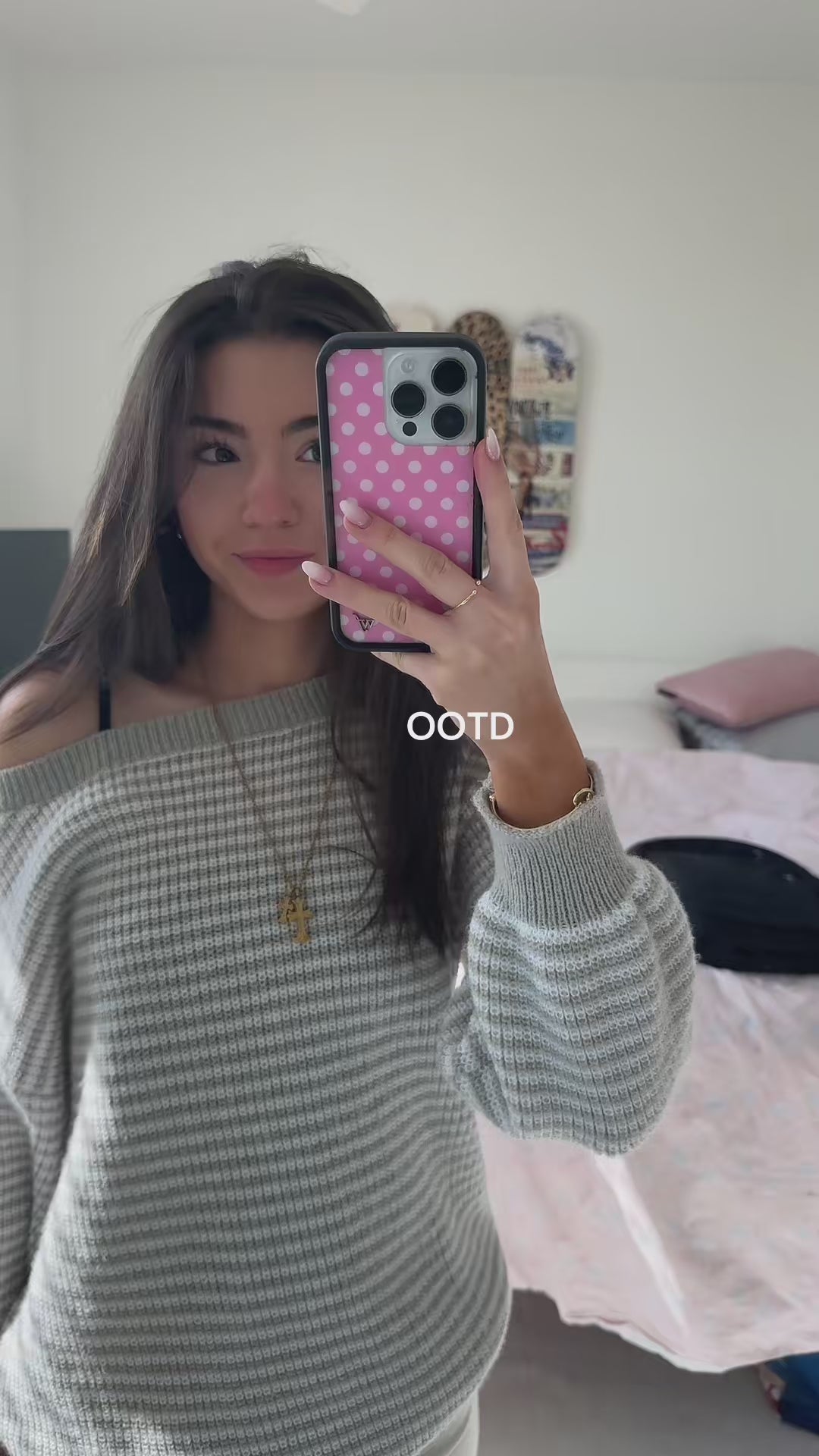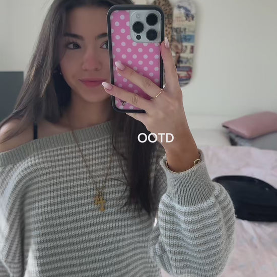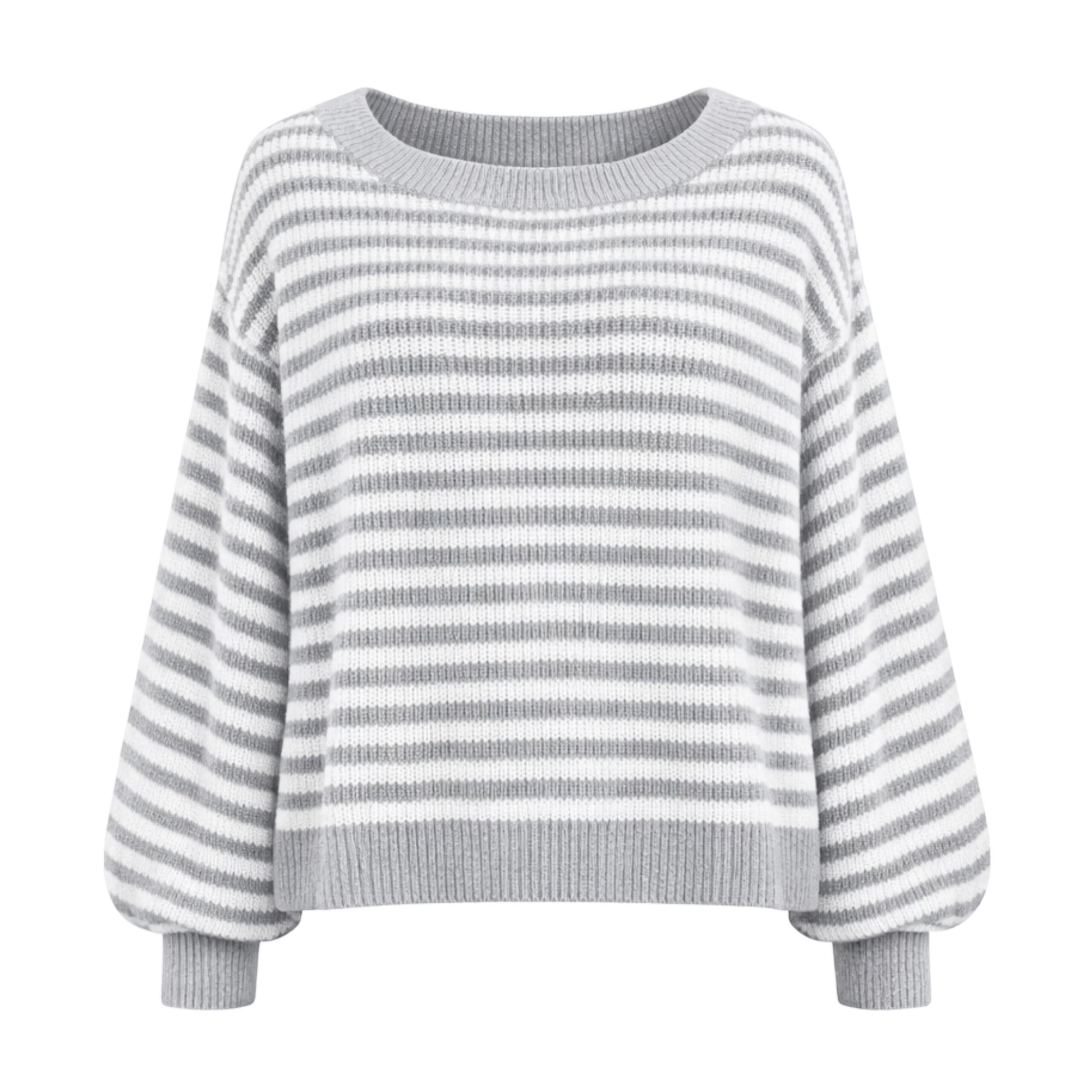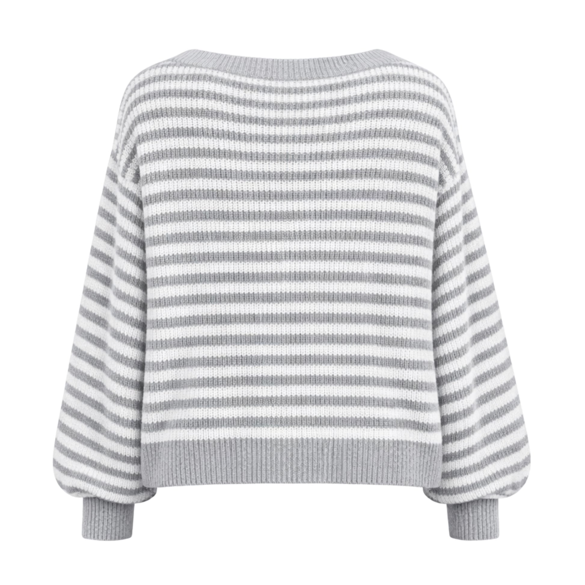 Rue Striped Knit Sweater Light Gray